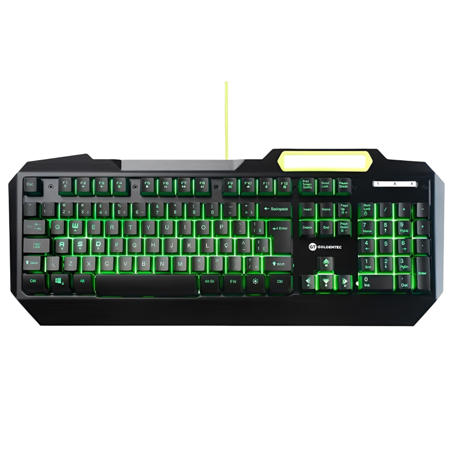 O Teclado Gamer Goldentec Legend foi desenvolvido para jogadores que buscam desempenho, resistência e conforto, aliado a um design premium e iluminação vibrante. Com chassi em alumínio escovado e LED verde com ajuste de intensidade, ele oferece durabilidade e estilo para qualquer setup gamer.